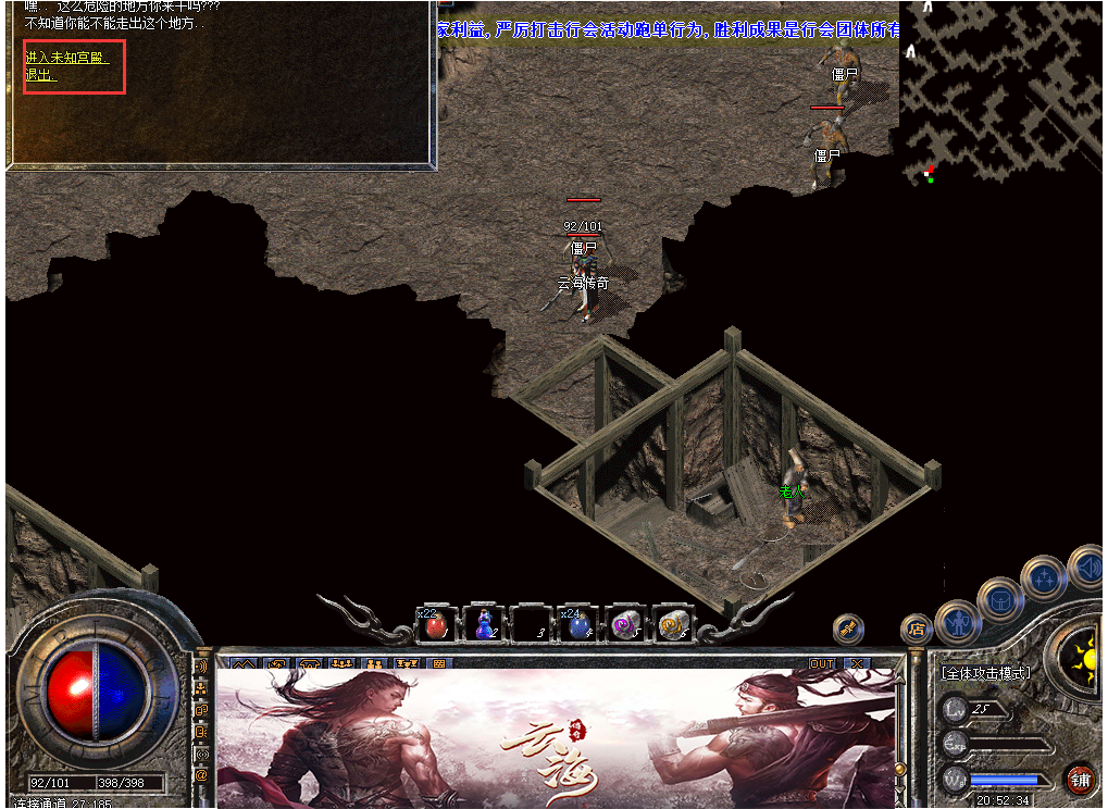 跑到此地图左下角,会看见一个神秘老人,点击,就能免费进入未知暗殿了