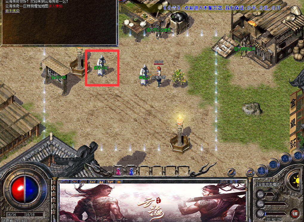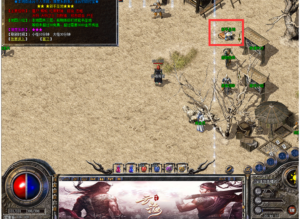 设置完成之后,点击npc,会将玩家传送至新手村,在新手村安全区外,有一个名叫新手练级的NPC,点击进入,能快速升级