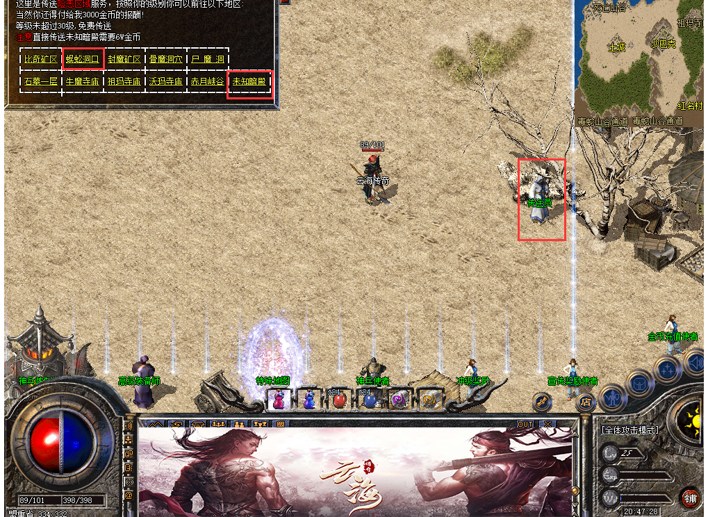 注意:法师玩家也可以前往未知暗殿召唤900血量的巨型多角虫,传送员直接传送需要一定数量的金币