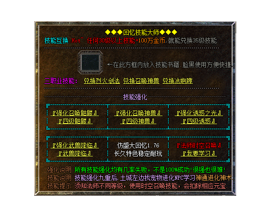 本服只适合喜欢复古-及03年之前的传奇骨灰玩家,喜欢快餐服变态服单职业的.远离此版!